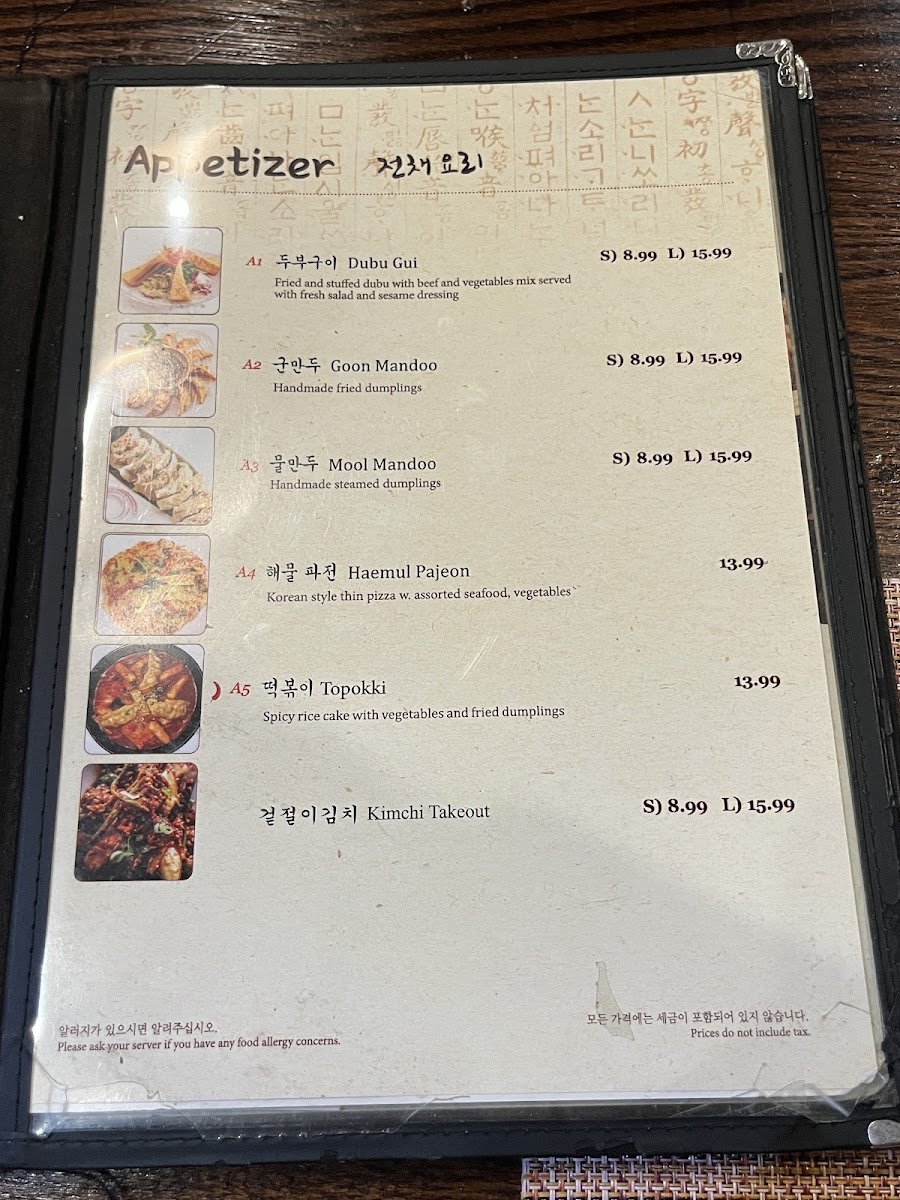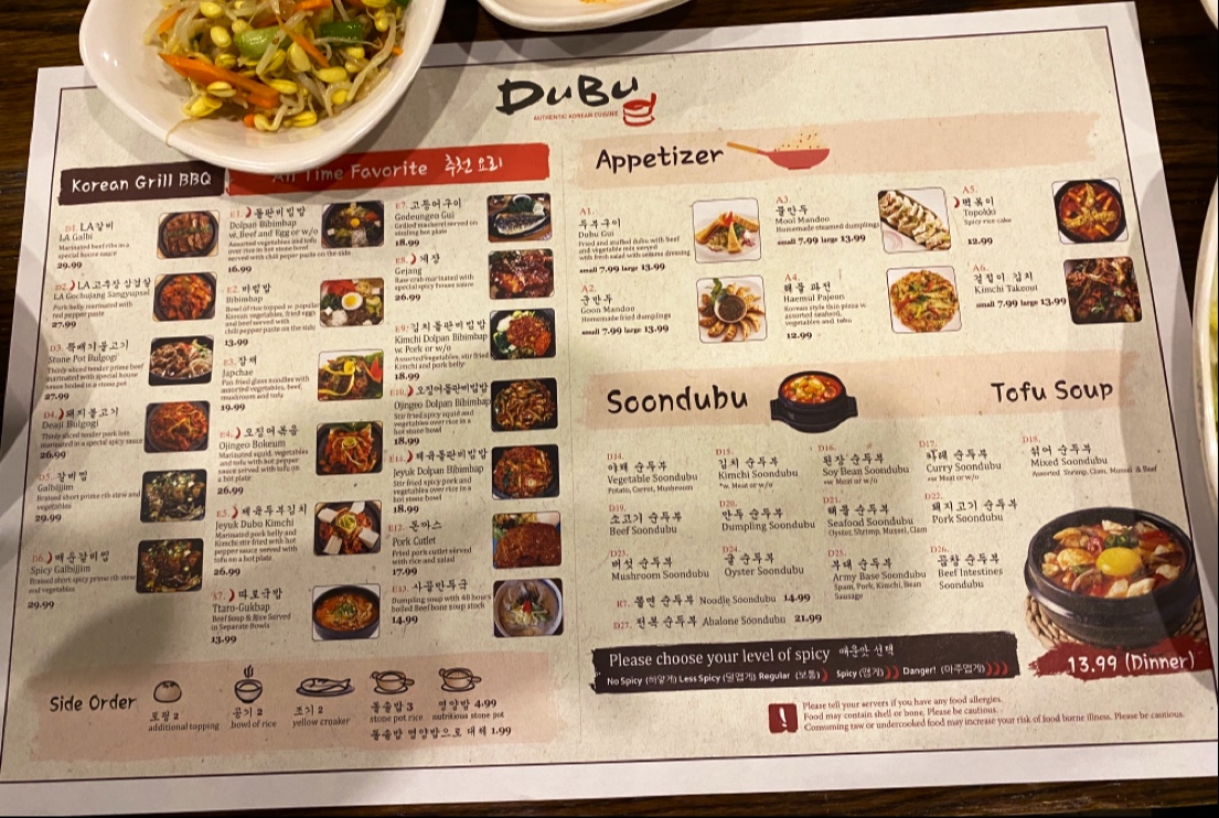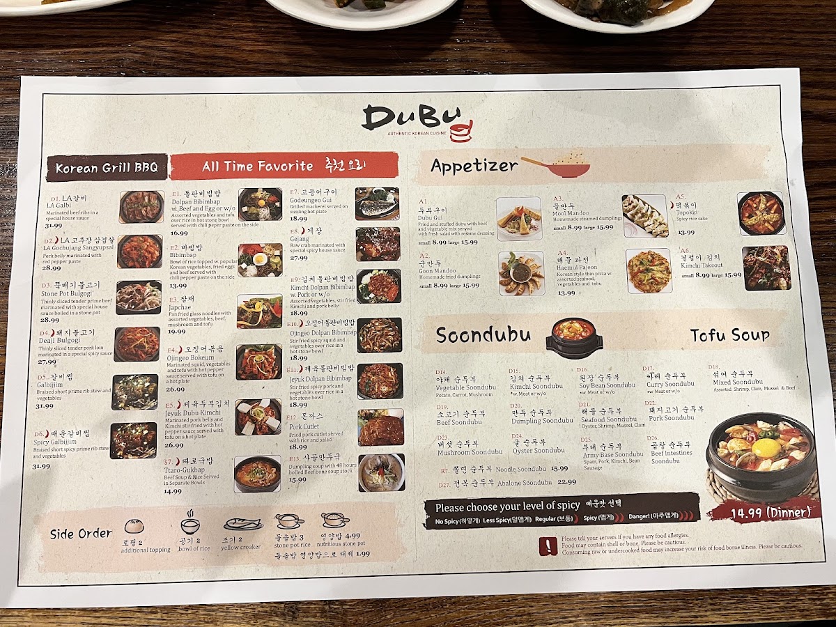 - Soups: The Seafood SoonDubu and Pork SoonDubu are both rich in flavors at just $17.99 each, offering a comforting experience.